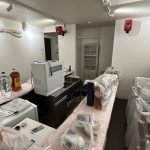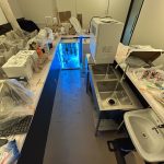 二層シンク、製氷機、食洗器、グラス、椅子など全て新品です!衛生面も徹底的にやっていくつもりなので扉付きの食器棚も設置しました。